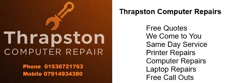 Thrapston Computer Repairs: Your Local Tech Solution. Fast, reliable computer repairs and IT support in Thrapston and surrounding areas. Get expert help with laptop repairs, virus removal, data recovery, and more. Need a new computer? We offer custom-built systems and upgrades.
